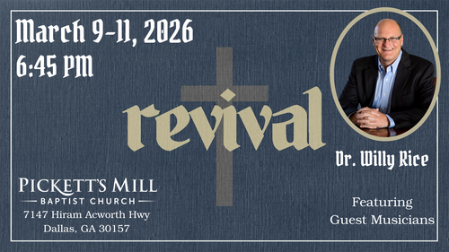 Pickett's Mill is a Bible-believing, Gospel-preaching church that exists to share and show the Good News about Jesus Christ to everyone. We would love for your family to experience the love of God at Pickett's Mill!